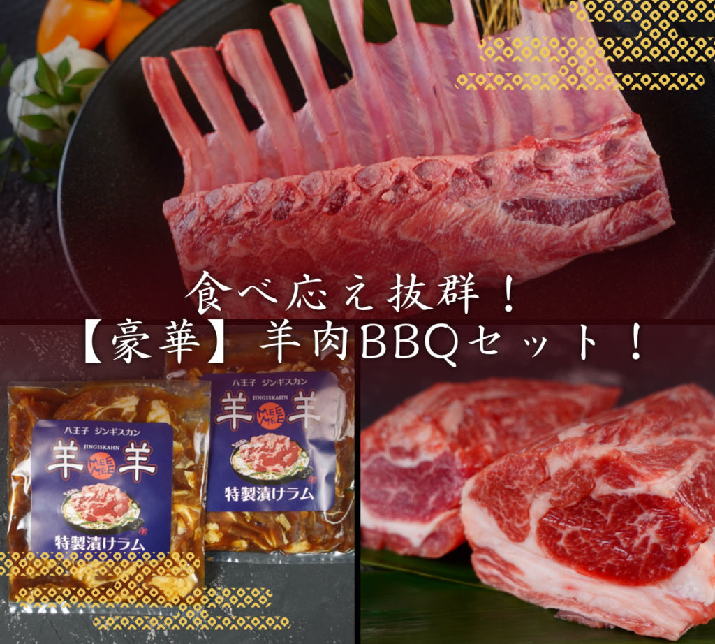 最高の思い出を作るなら【豪華】羊肉BBQセット! 大人数でのバーベキューで塊肉の美味さと見た目は皆さんの記憶に残ること間違いなし! そして、しっかりと味付けされた漬けラムはお酒やお米との相性も抜群で、BBQにおすすめの商品です。
