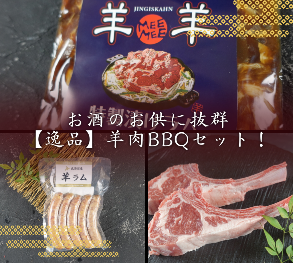 【逸品】羊肉BBQセットは、網や鉄板だけでなく、フライパンで焼いても美味しい「漬けラム」。北海道産羊肉を100%使用し、旨味がギュッと詰まった「ラムソーセージ」。そして、見た目も美味さも間違いなしの骨付き「ラムチョップ」の、BBQ食材のメインや〆のアクセントになる料理まで使いやすい3種類の羊肉セット商品です!